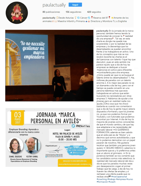 Esta semana he tenido la oportunidad, de participar en una Jornada sobre Marca Personal organizada por el Ayuntamiento de Avilés, y en la que hablamos sobre la importancia y la necesidad por parte de las empresas de gestionar su marca empleadora y establecer una estrategia de employer branding a través de acciones internas y externas, dirigidas a empleados y potenciales candidatos.