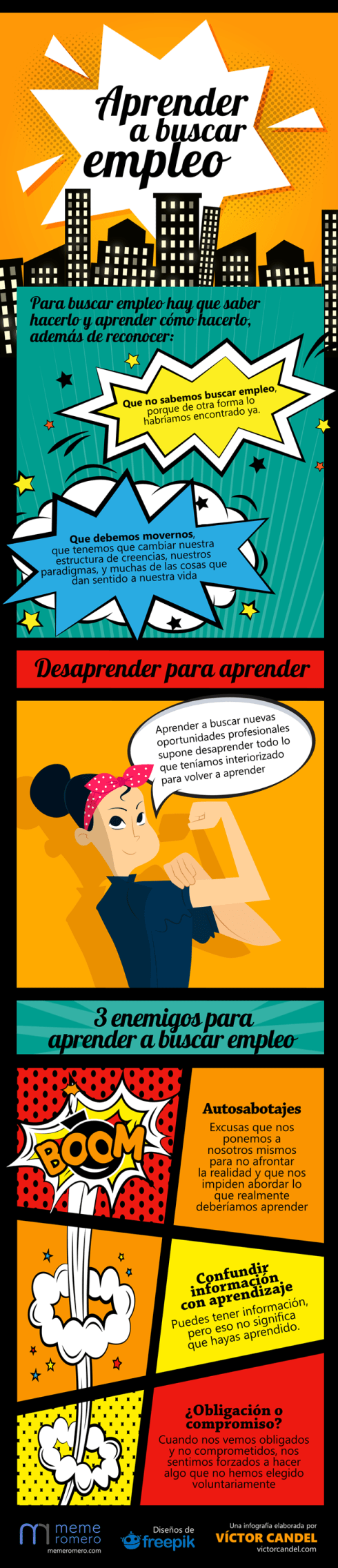 Aprender a buscar nuevas oportunidades profesionales, requiere de una disposición plena y de un cierto (cuanto mayor mejor) grado de apertura mental. Así que es inevitable desaprender todo lo que teníamos interiorizado para volver a aprender, para volver a adquirir las competencias que nos hagan posible reinventarnos personalmente y poder llevarlo al ámbito profesional.